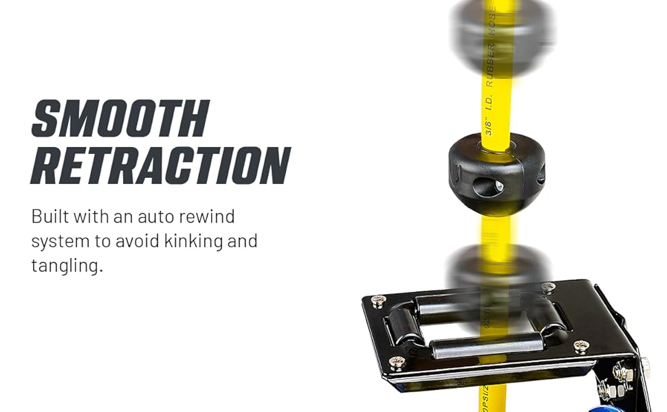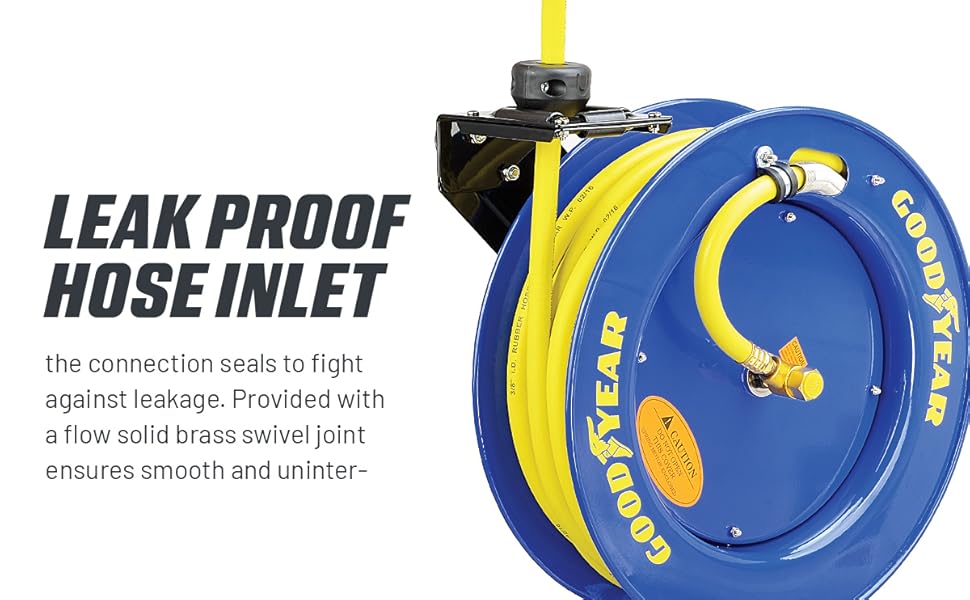 - UNIQUE FEATURES - Reinforced Flanged Edges, Full Brass solid swivel joint hose inlet connection protecting against leaks; includes an Adjustable Hose Stopper and 4 Non Snag Rollers, that assists to reduce hose abrasion.