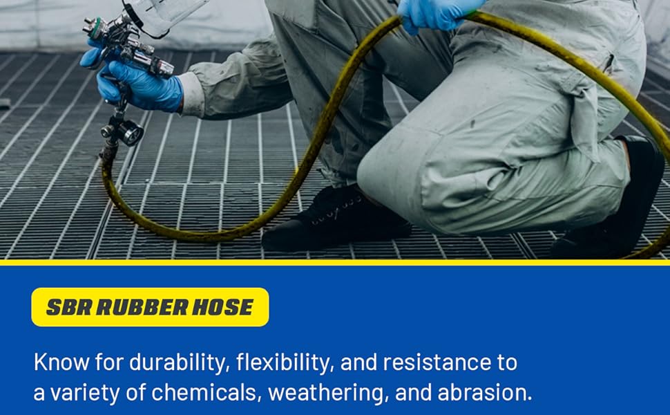 - HOSE SPECS - Premium Commercial SBR Rubber Hose is made from a blend of Styrene-Butadiene polymers, designed to lay flat, offering superior durability and aging resistance. It performs reliably in temperatures ranging from -50°C to 80°C (-58°F to 176°F).