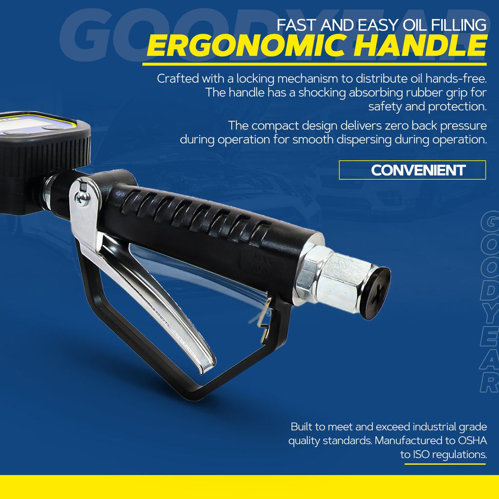PROPER USE SAFETY - Our Control Valves include rubber protection to absorb shock or an impact resistant polypropylene body, both delivering prolonged lifetime in workshops. Goodyear Control Valves are only suitable for: oils, motor oils, synthetic hydraulic oil, gear oil transmission fluids, w/ a MAX working temperature of 60℃ / 140℉. Follow manual instructions for setup always wear protective glasses/goggles or gear when operating lubrication/transfer equipment.