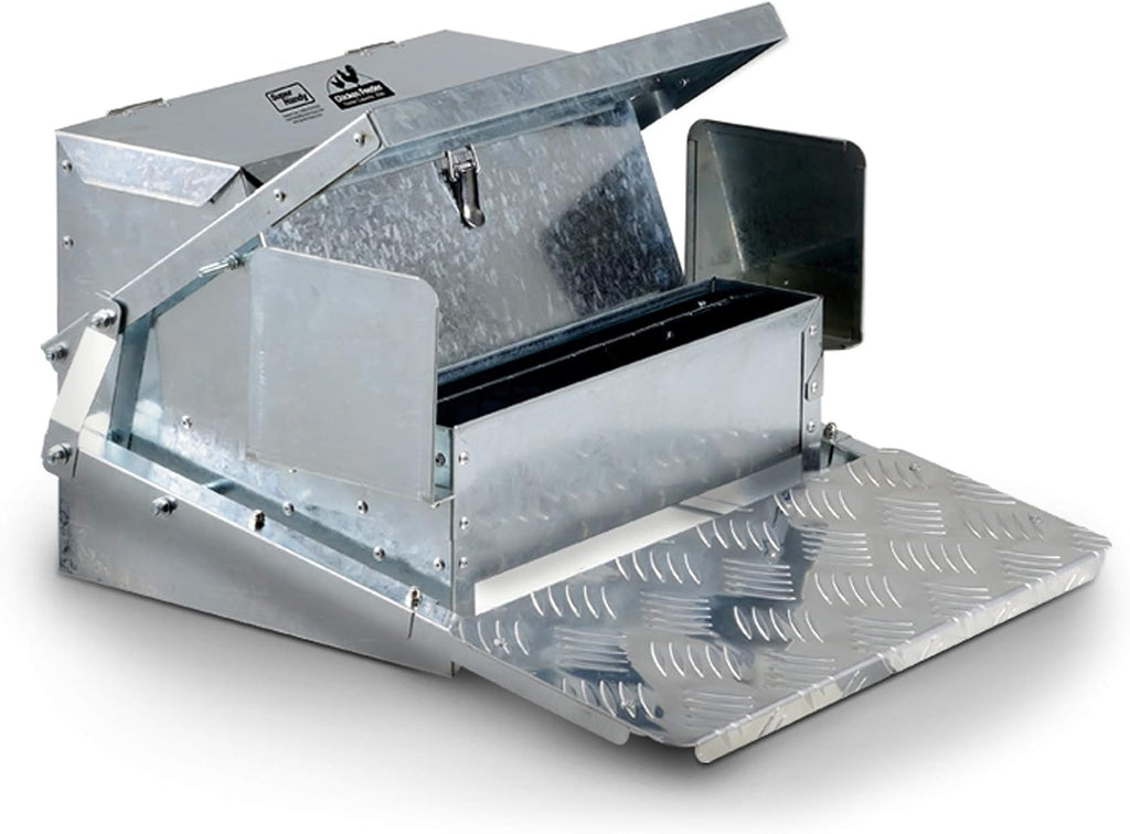 - Reliable Design - Use Side Guards to train fowl to stand on tread-plate to access food and protect the feed from escaping; Built of High Quality Galvanized Steel to withstand extreme outdoor conditions and provide excellent rust/corrosion resistance